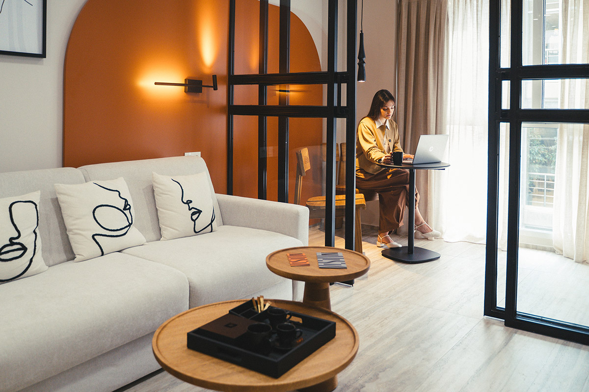 Housing four modern apartments on the fifth floor of a well-situated building, it’s a dwelling that mirrors the lively spirit of the city. The apartments are a warm invitation to relax after a day of exploration, each tastefully designed to offer a serene retreat amidst the city’s bustling vibe.