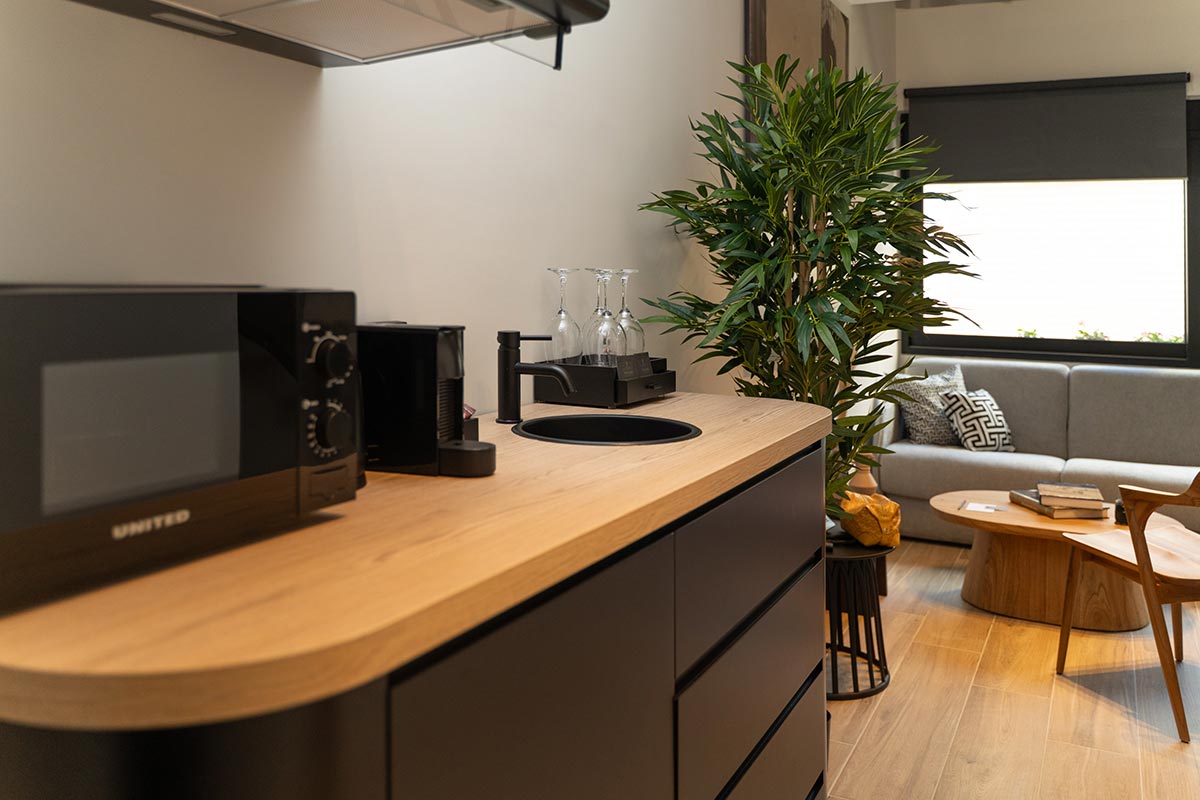 Stylish 57 sqm ground-floor duplex with step-free access, city-side views, and a split-level design. Enjoy a cozy lounge, boutique coffee bar, and a staircase adorned with art leading to your peaceful upper-level bedroom. With views overlooking the pavement just steps away from the city flow this cozy living area invites you to relax after a day of exploring, while the stylish coffee station bar adds a boutique touch, perfect for starting your mornings just the way you like them.Whether you’re traveling for work or leisure, this apartment offers a warm, well-organized space with the kind of layout and convenience that’s rarely found at ground level.