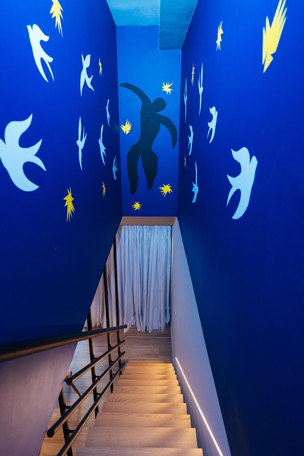 The outdoor space invites you to unwind or enjoy open-air meals, with art-adorned walls adding character to the backyard where the jacuzzi awaits. Inside, the duplex layout includes a cozy living area, a coffee station bar, and a well-designed sleeping space, all thoughtfully arranged for a comfortable stay.